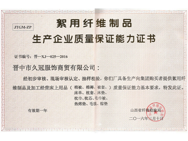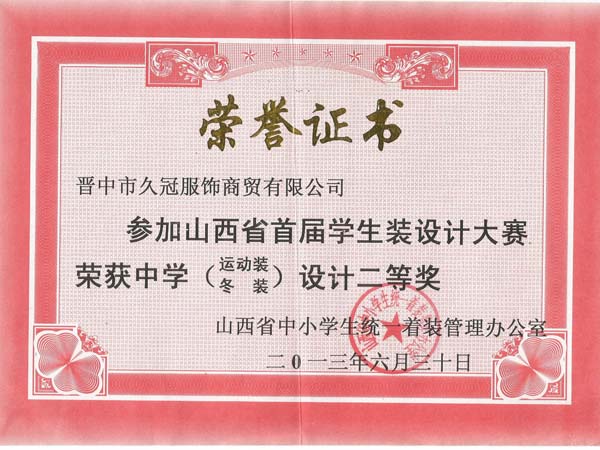 山西久冠服飾有限公司位于晉商故里山西省晉中市。公司注冊(cè)商標(biāo)“久冠”,是山西省教育學(xué)會(huì)學(xué)生服被裝專業(yè)委員會(huì)會(huì)長(zhǎng)單位,中國(guó)質(zhì)量萬里行促進(jìn)會(huì)理事單位,中國(guó)教育裝備行業(yè)協(xié)會(huì)學(xué)校后勤裝備管理分會(huì)常務(wù)理事單位。